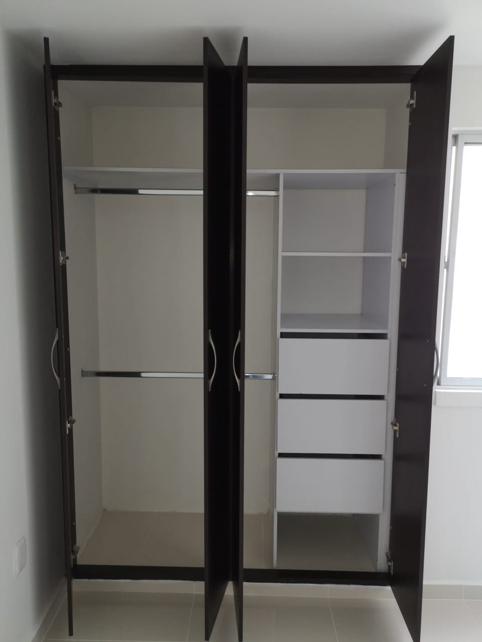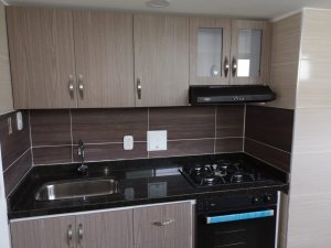 Consta de sala comedor, tres alcobas, dos con closets, dos baños, cocina integral, cuarto de servicio, zona de ropas, parqueadero.