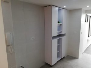 Conjunto residencial Rincón de los Caballeros, apartamento 103, sala, comedor, cocina integral tipo loft, balcón, chimenea electrica, 3 alcobas con closet, 3 baños, estudio, patio de ropa, persianas., paqueadero cubierto y bodega.
